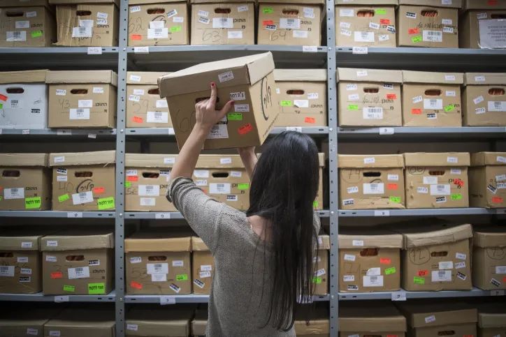 工作人員正在整理文件,以色列國家檔案館