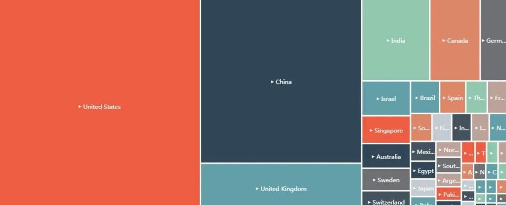 八月份,全球投資熱度區域繼續集中在美、中、英三國,其中美國以858個投資和收購項目佔據第一,中國和英國分別以528和158個項目位列第二和第三。