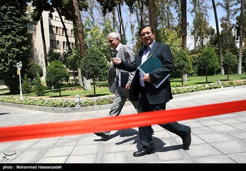 伊朗中央銀行行長阿卜杜納賽爾·赫馬蒂(右)與相關官員  圖源:塔斯尼姆通訊社