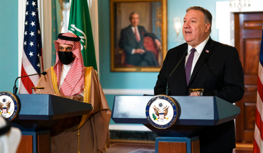 據美國之音10月14日報道,沙特外交大臣費薩爾親王到訪美國,與美國國務卿麥克·蓬佩奧展開戰略對話。蓬佩奧表示美國正在加強與沙特的聯繫,並宣佈了雙計劃在沙特首都利雅得建立新的美國大使館的計劃。此外,蓬佩奧明確表示將向沙特出售更多武器裝備,他說:「美國支持向沙特阿拉伯出售武器,這有助於沙特保護其公民的安全。」 上個月,以色列和阿拉伯聯合酋長國、巴林建立了外交關係,蓬佩奧表示希望沙特也能考慮與以色列推進關係正常化。
